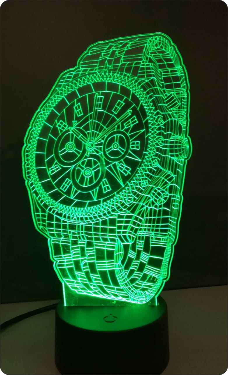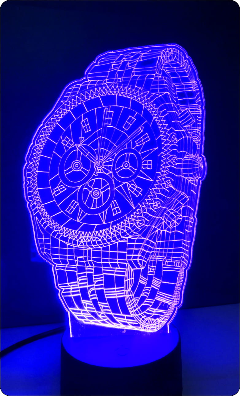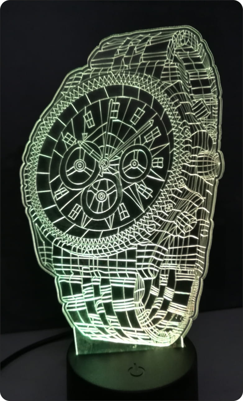 Nowoczesna, stylowa i funkcjonalna — Lampka Nocna LED 3D „Zegar Iluzja” to wyjątkowa dekoracja, która zachwyci miłośników elegancji, designu oraz futurystycznych dodatków wnętrzarskich. Dzięki technologii iluzji optycznej wzór zegara wygląda jak trójwymiarowy hologram, tworząc efekt głębi i światła, idealny do biura, gabinetu, salonu lub sypialni.