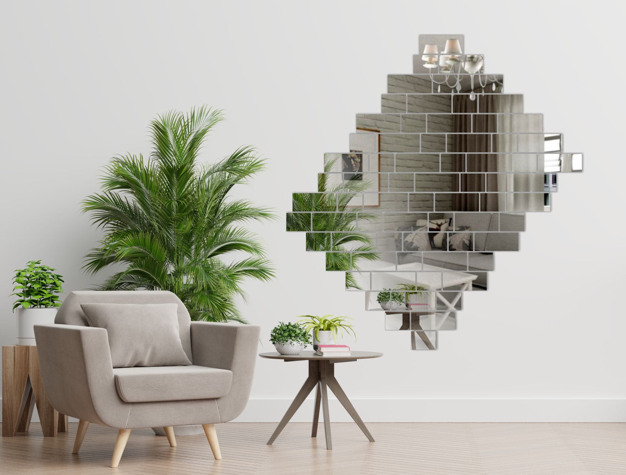 Lustrzana Struktura – Mozaika Cegiełek to dekoracyjne lustro akrylowe, które przekształca zwykłą ścianę w efektowną, przestrzenną kompozycję. Wzorowane na klasycznej cegle, ale wykonane w nowoczesnym, lustrzanym wydaniu, tworzy wyjątkowy efekt geometrycznego rytmu i subtelnej elegancji, idealny do nowoczesnych wnętrz, loftów, przestrzeni glamour czy aranżacji minimalistycznych.