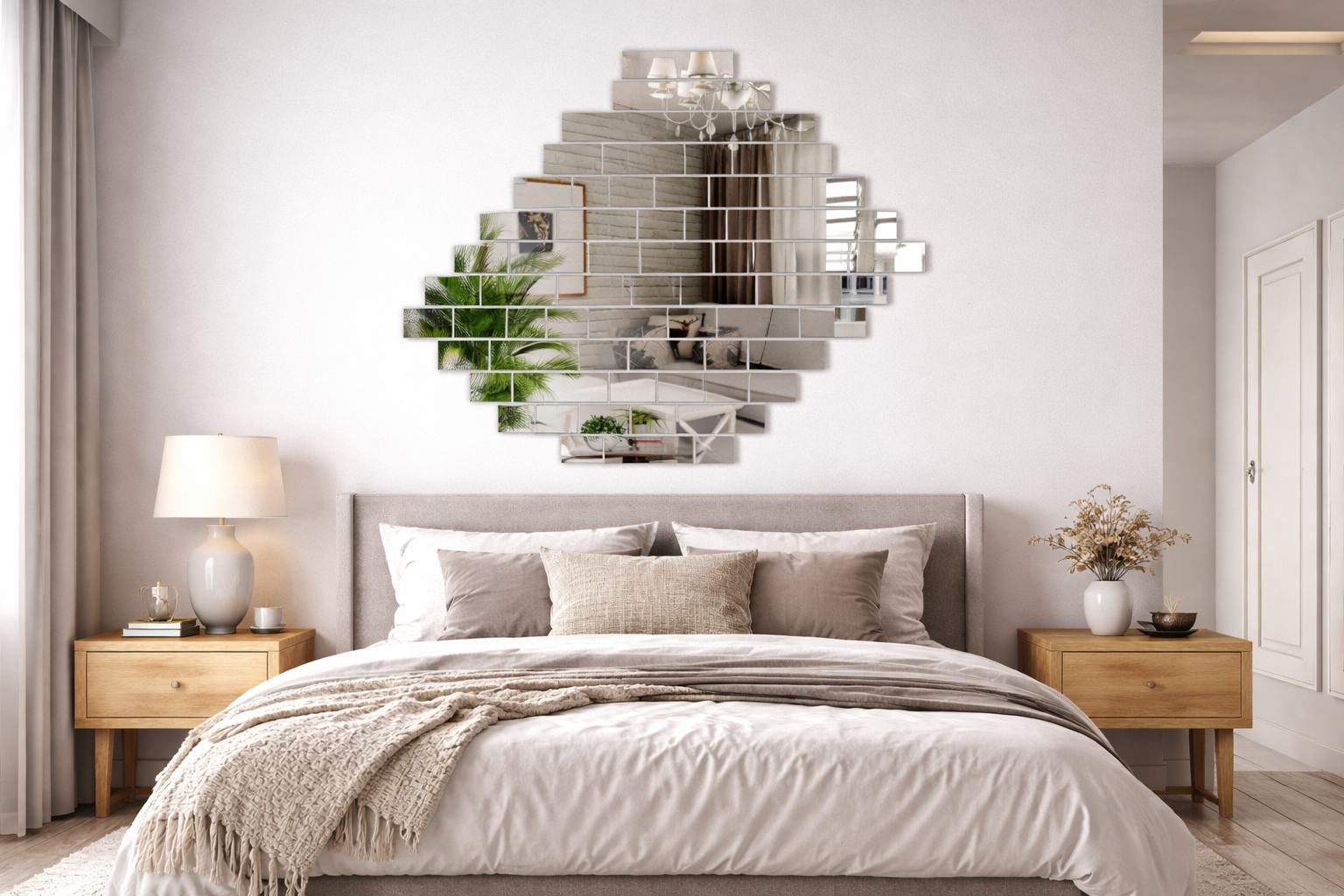 To dekoracja, która wprowadza do wnętrza strukturę, światło i rytm, tworząc efekt wyjątkowo eleganckiej ściennej mozaiki.